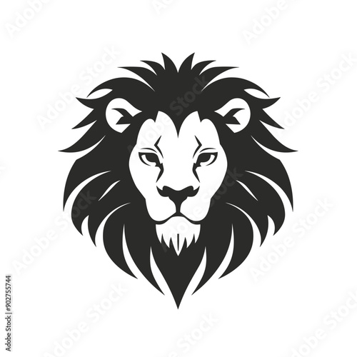Obraz premium Lion vector minimalistic black icon on white background. Logo, logotype,...
