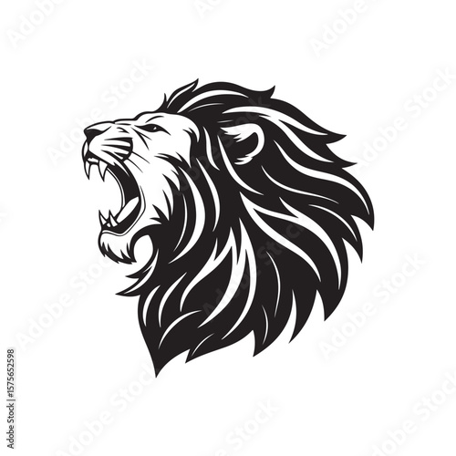 Fototapeta premium lion vector silhouette clip art logo design illustration. roaring head face...