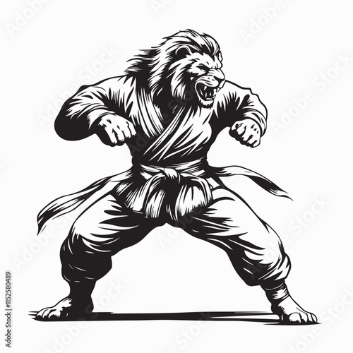 © Istianah, Fototapeta premium Lion Wearing Kimono Performing Judo Action Vector Illustration on white background.