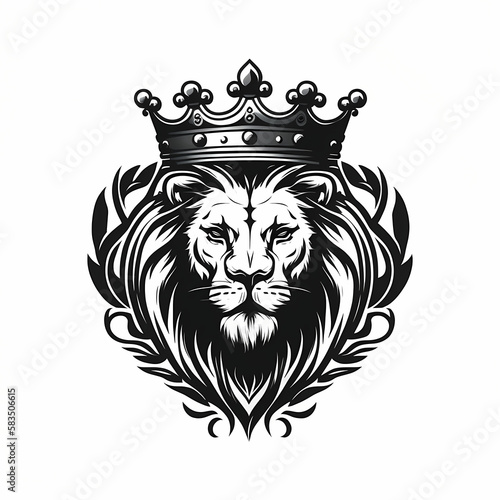 © premiumdesign, Fototapeta premium Lion With Crown. Generative AI