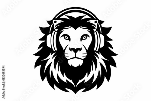 © Pinak, Fototapeta premium lion with headphone logo icon line art silhouette vector illustration