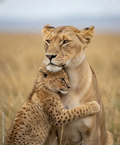 Obraz premium lioness and cub