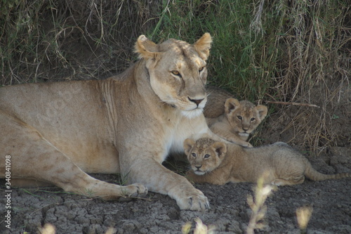 Naklejka premium lioness and cubs