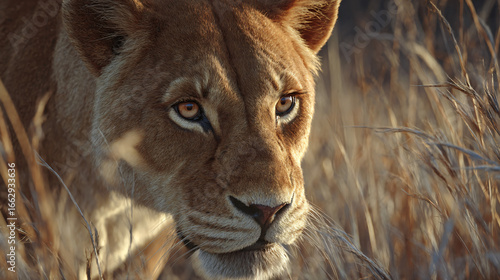 Naklejka premium lioness hunting