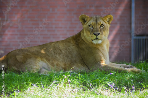 © Annemotion, Obraz premium Lioness lying in the grass