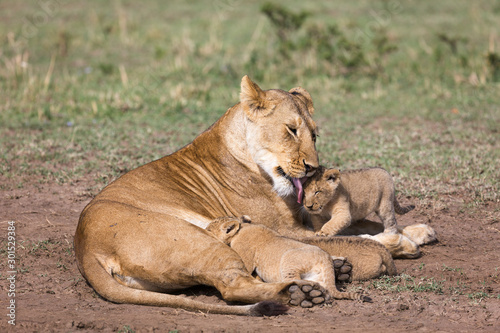 © Holly Auchincloss, Naklejka premium Lioness nursing young cubs
