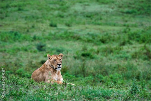 © Uryadnikov Sergey, Naklejka premium Lioness on a grass.