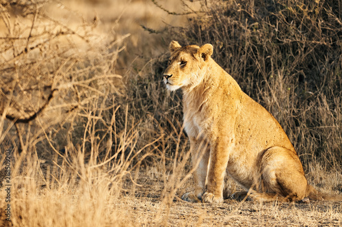 Fototapeta premium Lioness (Panthera leo) lying in the grass.