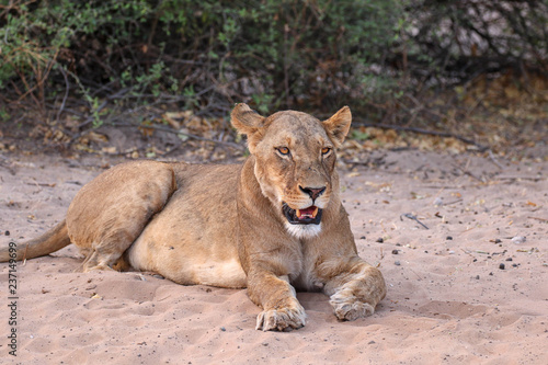 © bob, Obraz premium lioness sat in chobe national park botswana