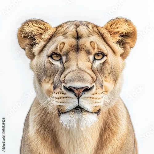 Fototapeta premium Lioness with a neutral expression isolated on white background