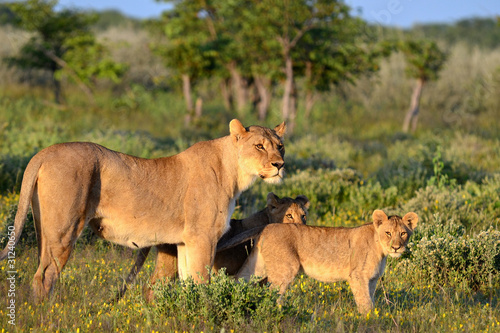 © gallas, Obraz premium Lioness with two cubs,Etosha,Namibia