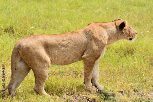 Obraz premium Lionne en pleine chasse dans les plaines du Serengeti