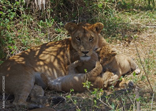 © sissoupitch, Naklejka premium Lionne et ses petits lionceaux