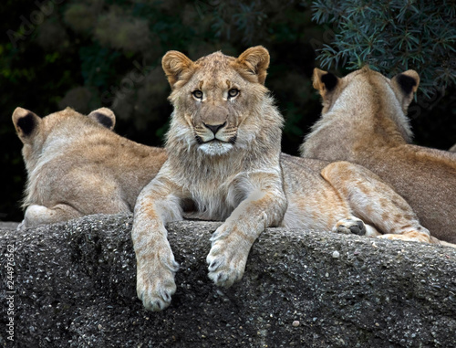 © Mikhail Blajenov, Fototapeta premium Lions on the rock. Latin name - Panthera leo