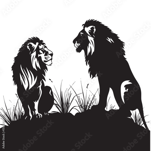 © Vector Stock, Fototapeta premium Lions silhouette isolated in White background