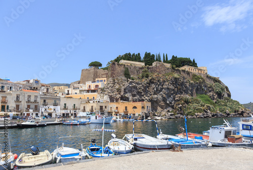 Fototapeta premium Lipari, main city on one of Aeolian islands near Sicily in Tyrrhenian Sea. port and 1556 fortifications, built atop ancient Greek walls.