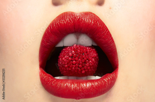 © bonninturina, Naklejka premium Lips bitting a berry