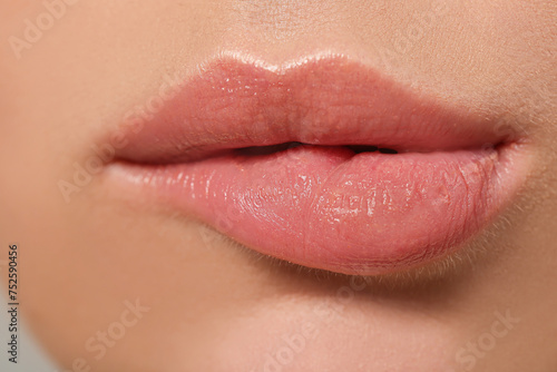 © Pixel-Shot, Fototapeta premium Lips of beautiful young woman, closeup