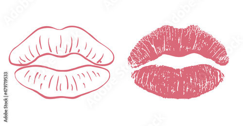 Obraz premium Lipstick kiss print and Lips icon isolated. Lips symbol set. Mouth shape.