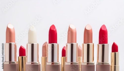 Obraz premium Lipstick Lineup: A vibrant collection of lipstick tubes in various shades,...