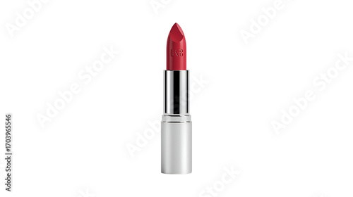Obraz premium Lipstick tube with metallic reflections isolated on pure white background in...