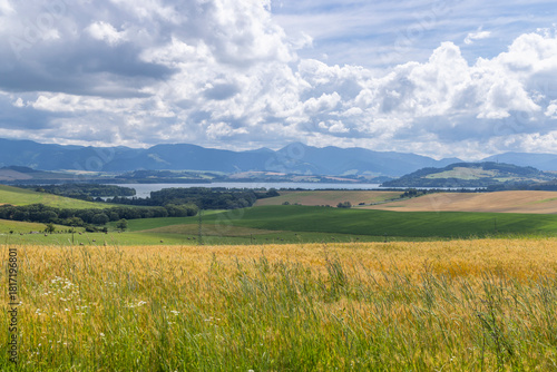 © Richard Semik, Fototapeta premium Liptovska Mara lake with rolling crop fields, Slovakia