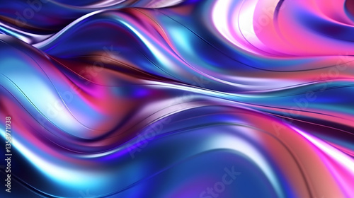© Asad, Fototapeta premium Liquid Dreamscape: A mesmerizing swirl of iridescent blues, pinks, and purples in a flowing, abstract design.