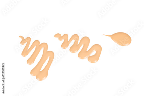 Obraz premium Liquid foundation swatch isolated on white background. Close Up of makeup cream sample.