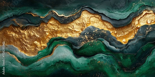 Fototapeta premium Liquid Gold: Abstract Emerald and Gold Swirls
