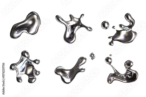 Obraz premium Liquid metal shapes isolated on transparent or white background, png