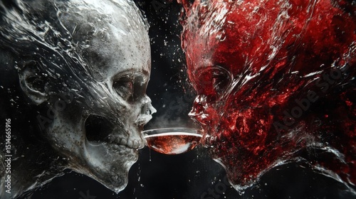 © Andrian Supyanda, Fototapeta premium Liquid Skulls: A Shared Drink