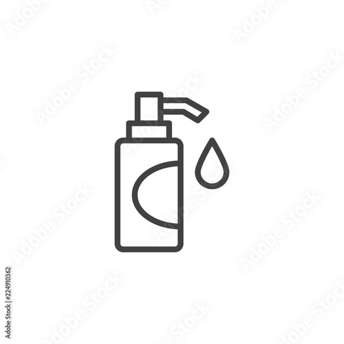 © alekseyvanin, Fototapeta premium Liquid soap bottle outline icon. linear style sign for mobile concept and web design. Lotion soap simple line vector icon. Symbol, logo illustration. Pixel perfect vector graphics