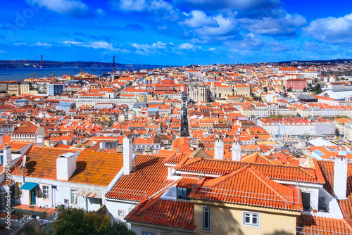 Obraz premium Lisbon, Portugal City Skyline with bridge and the Tagus River