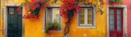 © Media Srock, Fototapeta premium Lisbon street with windows and houses and flowers