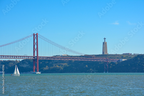 Naklejka premium Lisbonne: Pont du 25 avril et sanctuaire du Christ Roi