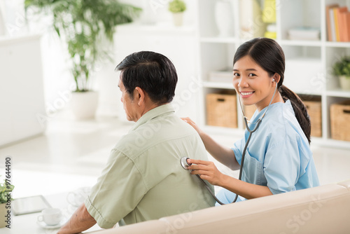 © DragonImages, Obraz premium Listening to lungs