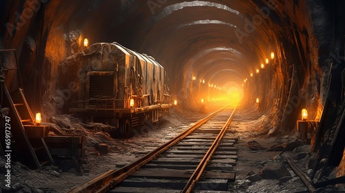 Naklejka premium Lit and railed tunnel for miners