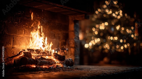 © Marco, Obraz premium lit fireplace next to a Christmas tree