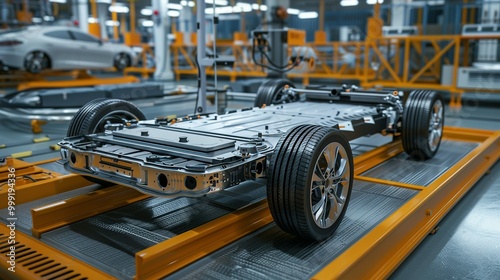 Fototapeta premium Lithium Ion Module Production for Electric Vehicles in the Automobile Sector