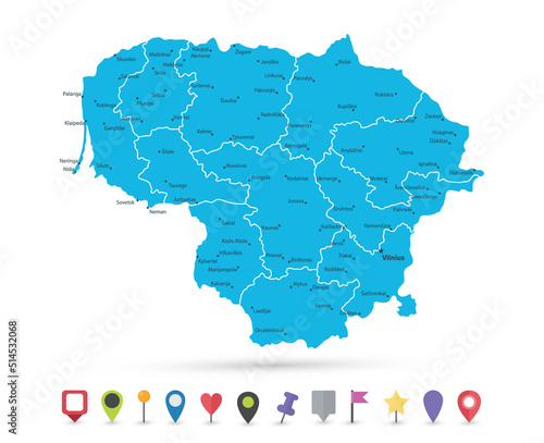 © Iryna, Obraz premium Lithuania Map and Flat Map Icons
