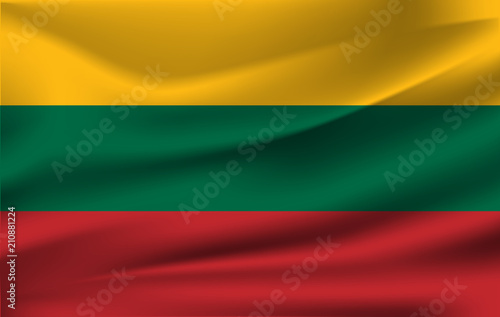© eugenekh, Naklejka premium Lithuania waving flag. Lithuania national flag background texture. illustration.