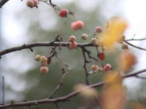 © Любовь Челюканова, Fototapeta premium Little apples on the tree on blurred background