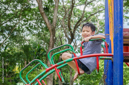 Fototapeta premium Little Asian boy playing at playground