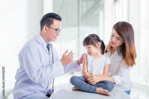 Fototapeta premium little asian girl receiving injection or vaccine
