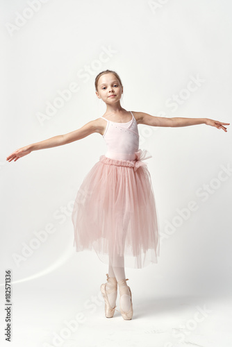 © SHOTPRIME STUDIO, Naklejka premium little ballerina is dancing on a white background