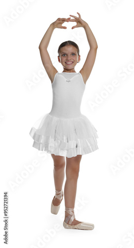 © New Africa, Naklejka premium Little ballerina practicing dance moves on white background