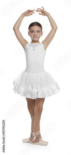 © New Africa, Naklejka premium Little ballerina practicing dance moves on white background