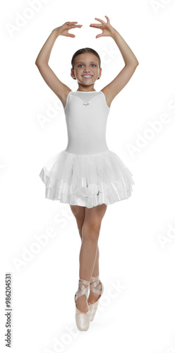 © New Africa, Naklejka premium Little ballerina practicing dance moves on white background