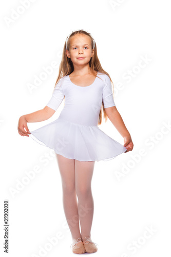 © oxilixo, Naklejka premium Little ballet dancer isolated on a white background
