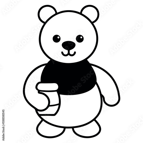 © MD, Fototapeta premium Little bear smiling while holding honey pot Line Art Vector illustration